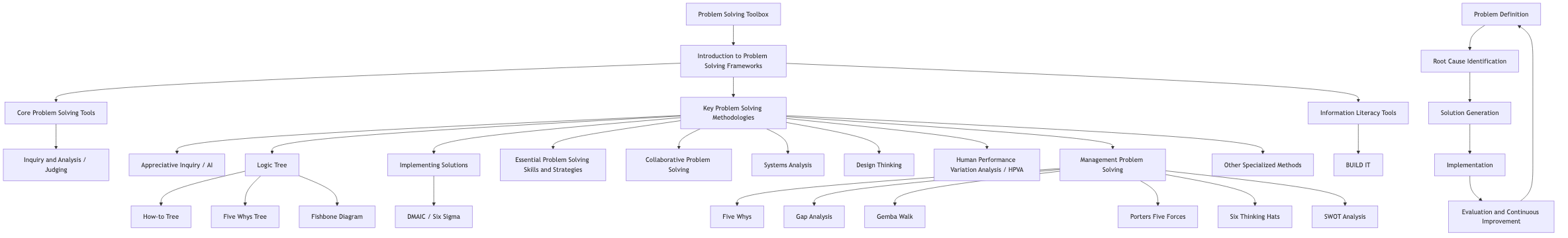This tutorial aims to provide a comprehensive set of problem-solving tools and methodologies, covering various approaches from basic analytical techniques to human-centered and collaborative frameworks. We will delve into the core principles, purposes, and practical applications of these tools, and combine them with common problem-solving stages and essential skills to help you enhance your ability to solve complex problems.